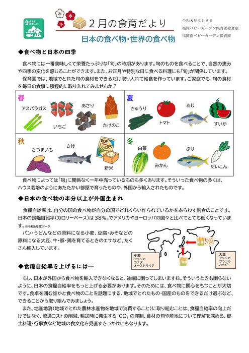 福岡南ベビーガーデン保育園トップページ > 福岡南ベビーガーデン保育園 お知らせと新着情報 ▼年月選択 2024年03月 2024年02月 2024年01月 2023年12月 2023年11月 2023年10月 2023年09月 2023年08月 2023年07月 2023年06月 2023年05月 2023年04月 2023年03月 2023年02月 2023年01月 2022年12月 2022年11月 2022年10月 2022年09月 2022年08月 2022年07月 2022年06月 2022年05月 2022年04月 2022年03月 2022年02月 2022年01月 2021年12月 2021年11月 2021年10月 2021年09月 2021年08月 2021年07月 2021年06月 2021年05月 2021年04月 2021年03月 2021年02月 2021年01月 2020年12月 2020年10月 2020年08月 2020年03月 検索2020-10-312020-11-2 園だより11月号をアップしました。2021-02-02園だより2月号をアップしました。2020-10-01園だより10月号をアップしました。2020-8-31園だより9月号をアップしました。2020-08-08園だより 8月号をアップしました。2020-03-28ホームページをリニューアルいたしました。RSS(別ウィンドウで開きます)(41~46/46件)最初1 2 3園だより園だより 7月号食育だより4月食育だより(福岡南)5月食育だより(福岡南)6月食育だより (福岡南)7月食育だより (福岡南)8月食育だより(福岡南)9月食育だより(福岡南)10月食育だより(福岡南)11月食育だより(福岡南)12月食育だより(福岡南)1月食育だより(福岡南)2月食育だより(福岡南)園の概要 保育方針や概要、交通アクセスなどご案内します。 くわしくはこちらくわしくはこちらくわしくはこちら園の一日 朝の登園から夕方の降園までの一日をクラス毎にご紹介します。 くわしくはこちらくわしくはこちらくわしくはこちら年間行事 当園の年間行事をご案内いたします。 くわしくはこちらくわしくはこちらくわしくはこちらフォトアルバム 当園の写真です。 くわしくはこちらくわしくはこちらくわしくはこちら